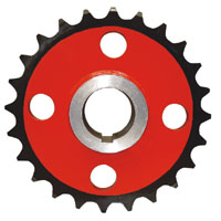 輸送設(shè)備驅(qū)動裝置鏈傳動中,采用大小鏈輪傳動進(jìn)一步降低輸送設(shè)備的鏈條速度,大鏈輪常用齒數(shù)有:32、36、42、46、52;小鏈輪常用齒數(shù):17、19;根據(jù)需要選用單排齒、雙排齒及多排齒。